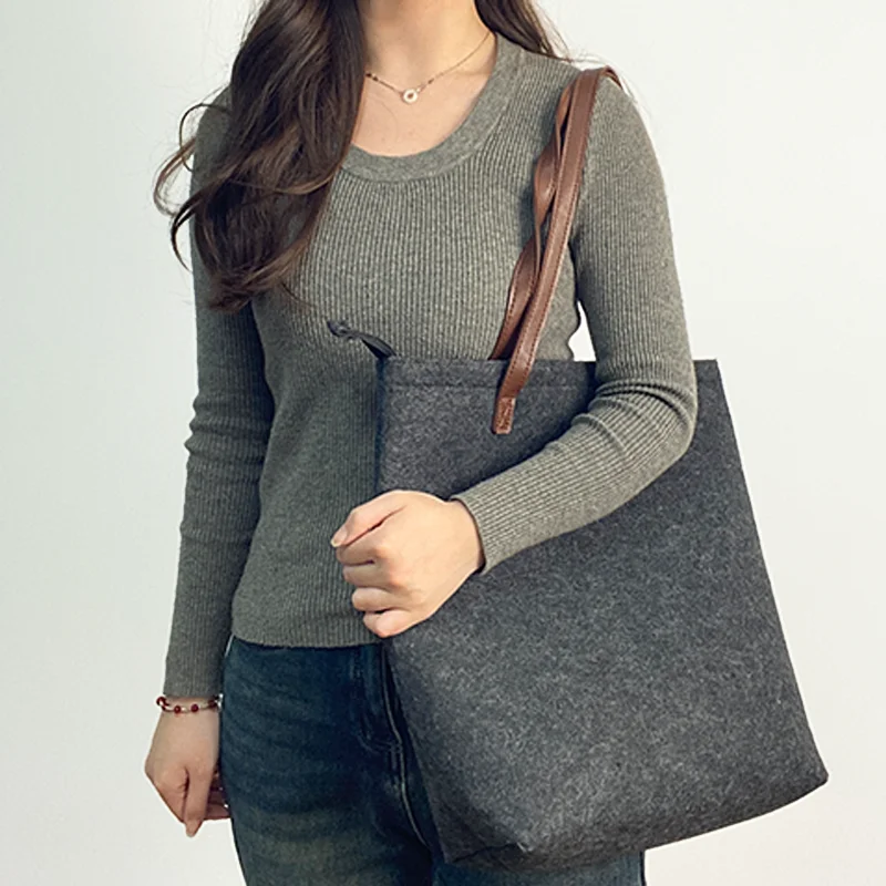 Reusable Custom Logo Eco-friendly Casual Large Capacity Felt Bag Women Felt Tote Bag Handbags Wool Felt Shopping Bag